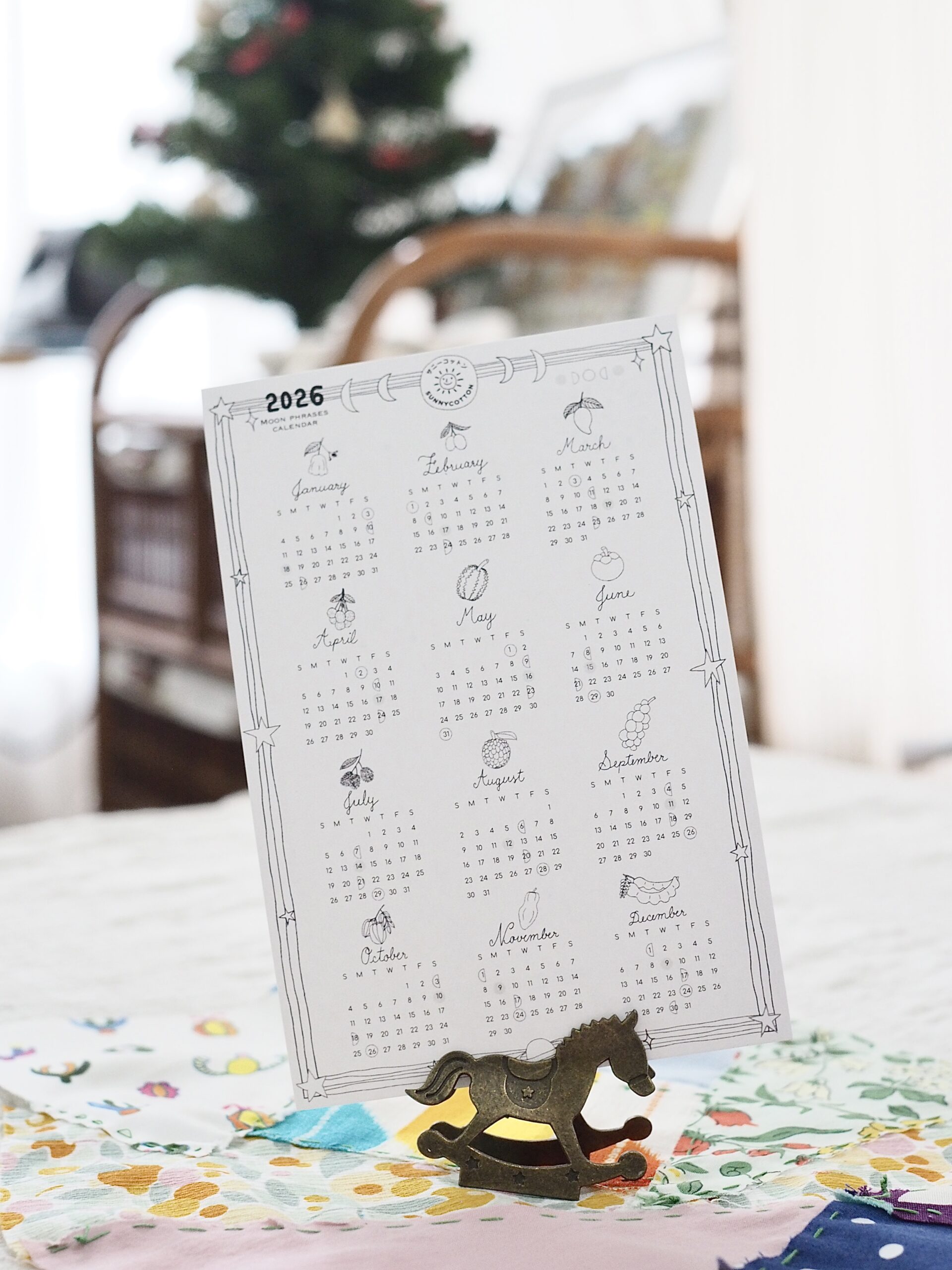 ด้านหน้าเป็นปฏิทินปี 2026 พร้อมระบุรอบของพระจันทร์